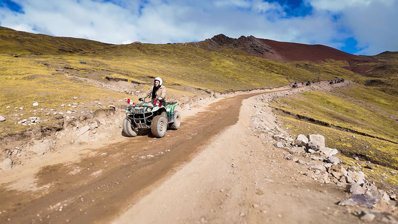 Depois das 3 horas de estrada desde Cusco, você chega à base onde ficam estacionados os quadriciclos. Ali, recebe as instruções de segurança e os equipamentos indispensáveis, como o capacete. Durante a subida, um guia segue na frente indicando o caminho, enquanto outro vai por último para garantir que todos estejam bem e prestar apoio em caso de imprevistos.